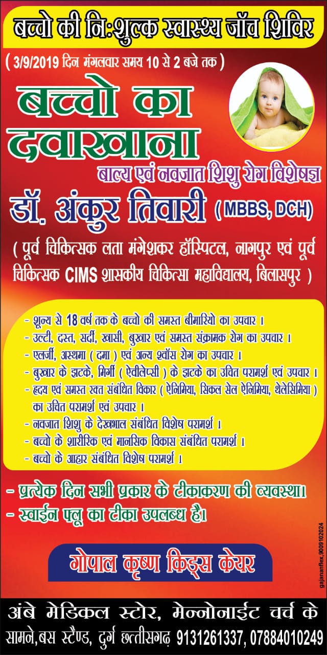 Consultant, Gopal Krishna kids care, durg September, 2019 - Present