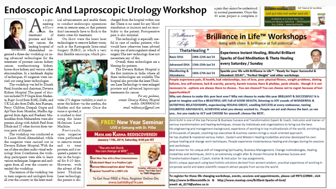 - Extra corporal shock wave Lithotripsy-a paper published in Journal published in Annual conference of IMA, Gujarat State Branch in November – 2000.