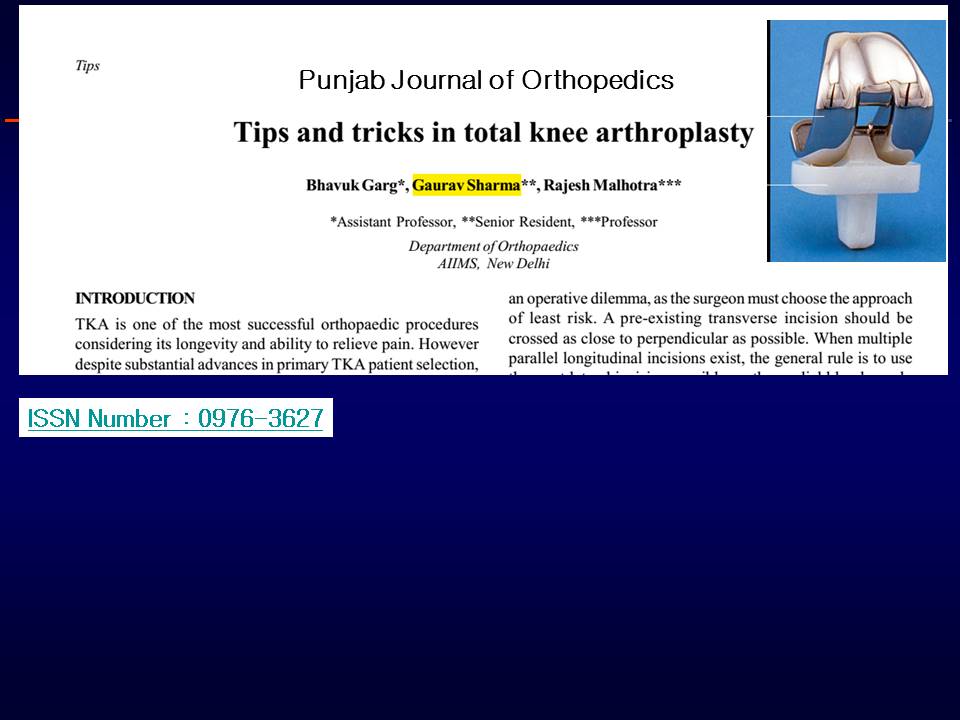 - Bhavuk Garg, Gaurav Sharma, Rajesh Malhotra:Tips and tricks in total knee arthroplasty. Punjab Journal of Orthopaedics Vol-XIV, No.1, 2013: 61-67