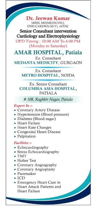 Senior Consultant Intervention Cardiology and Electrophysiology, Columbia Asia Hospital, Patiala - Currently working here