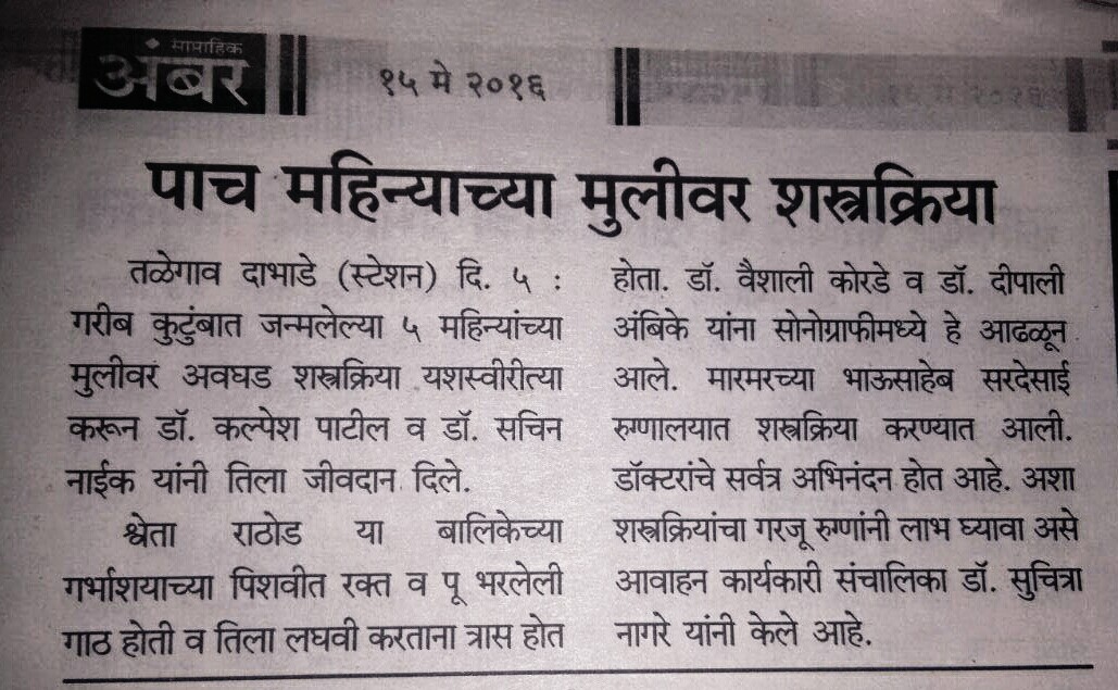 - Case series of Gracilis Sling in Pediatric Fecal incontinence. (5th July 2014) - Shirine Mehtaji Award winner, Association of Medical Women in India, Mumbai.