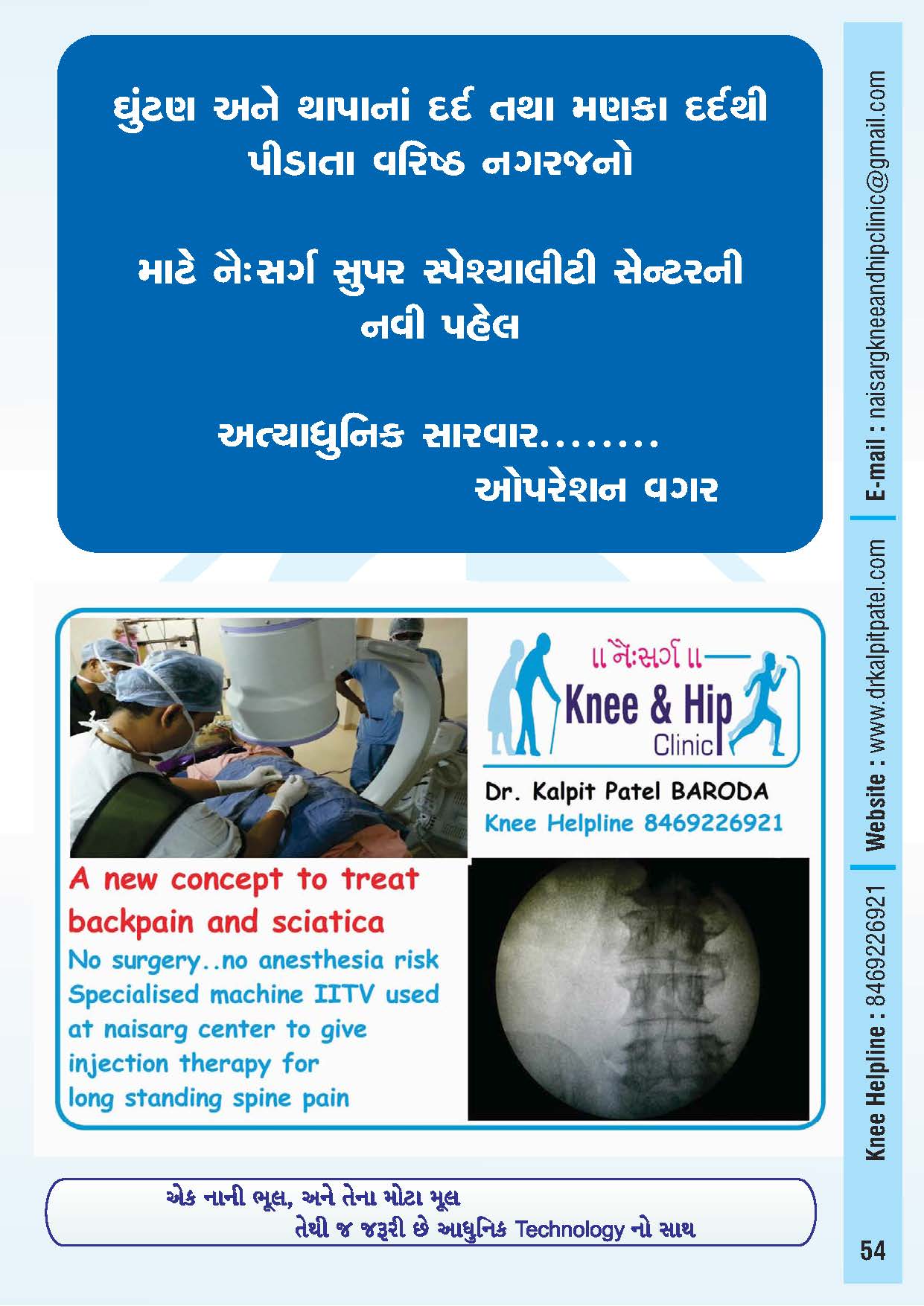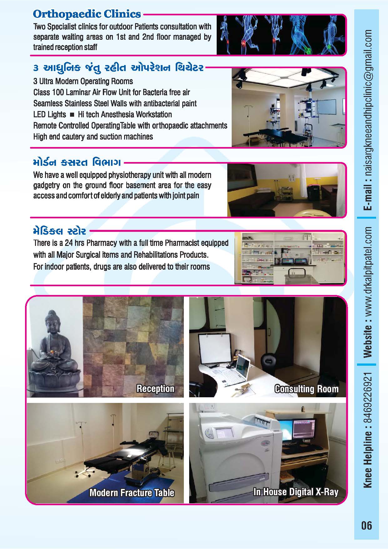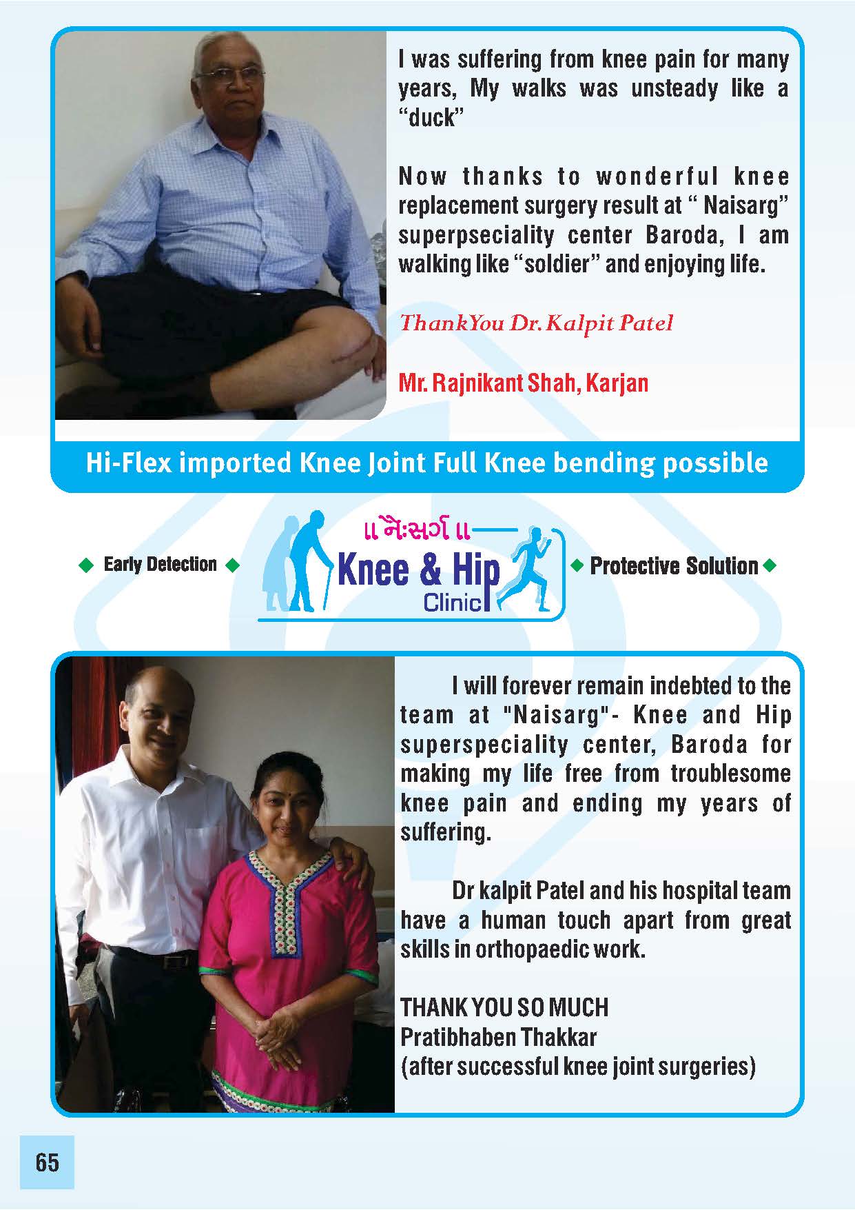 - With improved surgical techniques, advances in metallurgy ( titanium joints), and innovations in technology( Hi-flexion designs) Dr Kalpit Patel MSorth FRCS offers the latest surgical solutions at Naisarg superspeciality hospital jetalpur baroda with a smart and Intelligent joint replacement theatre