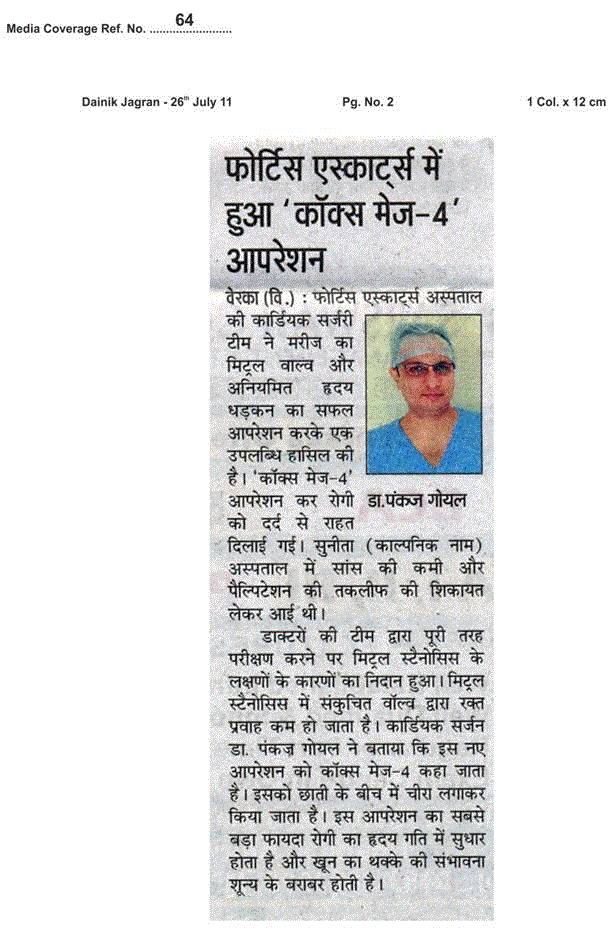 Addl. Director and Head, Fortis Escorts Hospital, Amritsar 2003 - Present