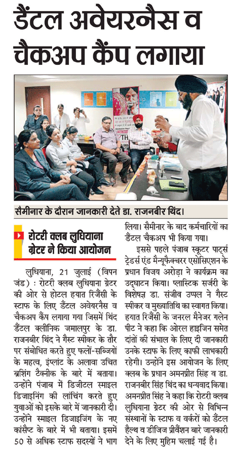 - He lectures extensively in various schools and colleges in Punjab on the importance of oral health and its awareness through his almost 20-year-old campaign, ‘Mission Smile
