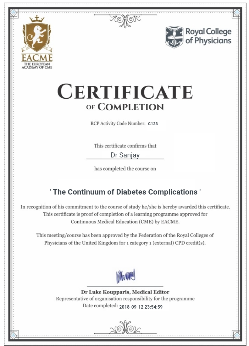 PGD In Diabetology And Enocrinology (RCP UK), 2017, Royal College Of Physicians, Patna, India