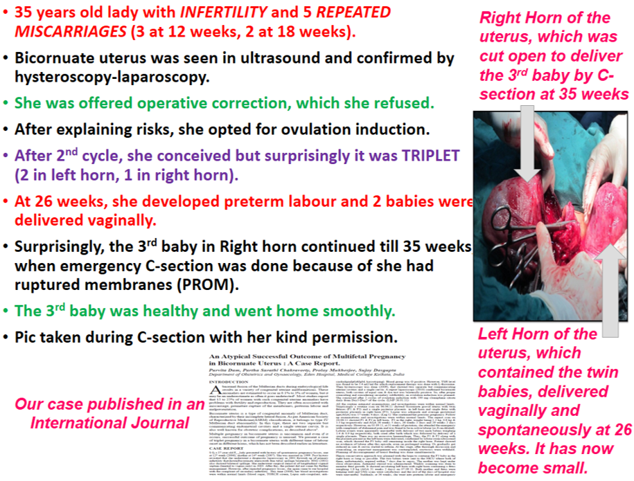 - An Atypical Outcome Of Multifoetal Gestation In Bicornuate Uterus 1st prize in BOGSCON, 2012 January, 2012 ECOHUB Conclave, Kolkata