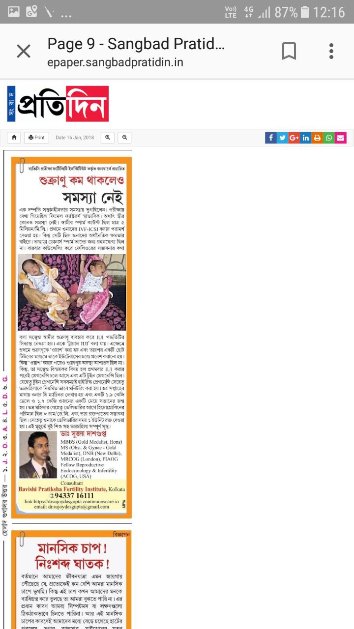 Ex- Consultant- Infertility and IVF, Bavishi Pratiksha Fertility Institute Tollygunge, Kolkata September, 2017 - Present